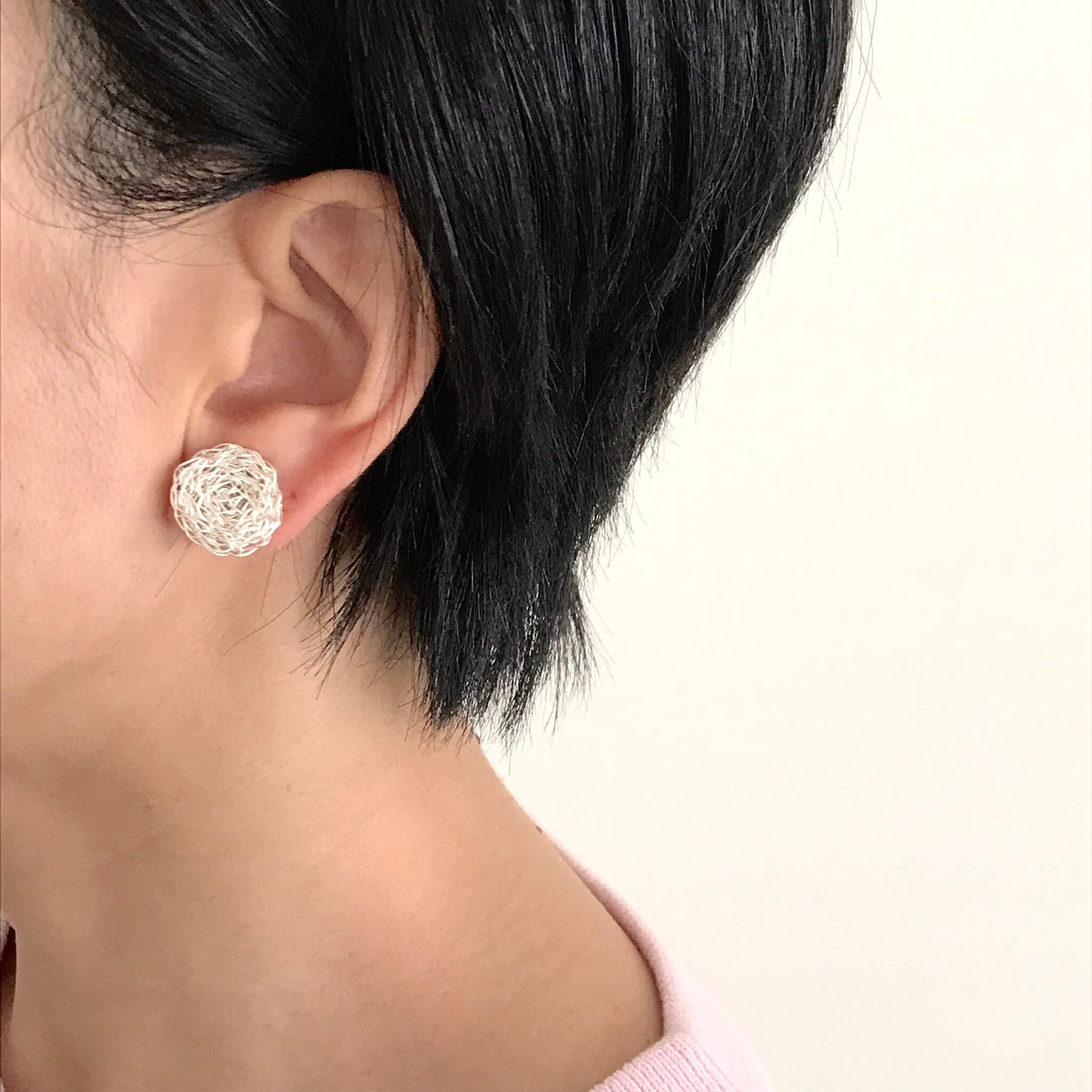 ワイヤーを編んで平らな◯に仕上げますので、フィット感が抜群のイヤリングです。
